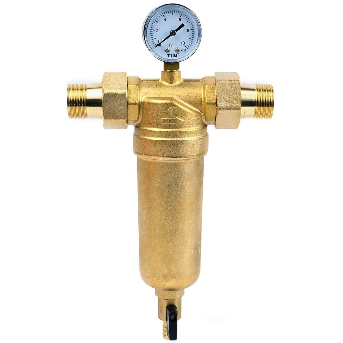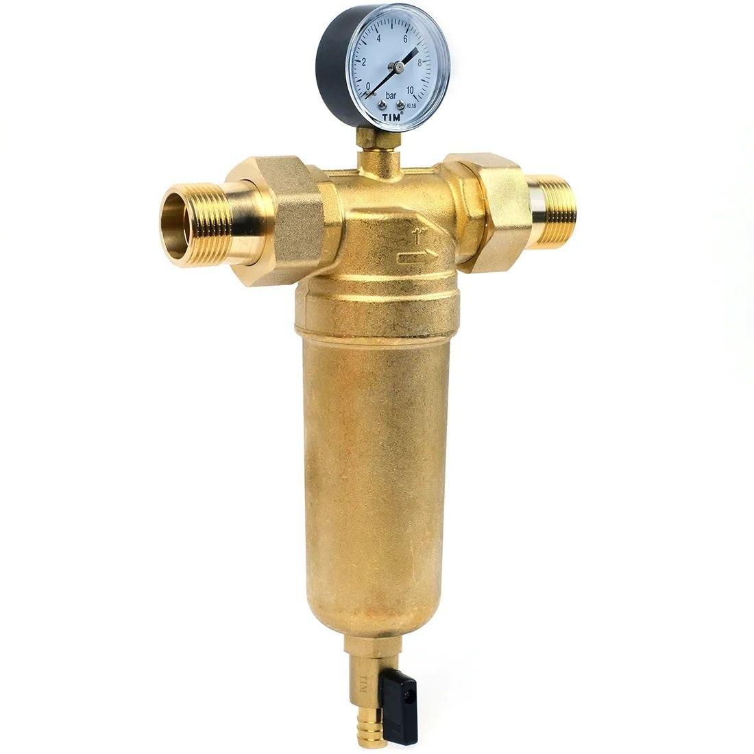Фильтры промывные TIM JH-3001 предназначены для очистки питьевой и хозяйственной воды от механических загрязнений. Они защищают трубопровод и установленную на нем арматуру и оборудование от нерастворимых в воде примесей: песка, стружки, пакли, ржавчины и т. д. Фильтр устанавливается перед счетчиками воды, регулирующей арматурой, расходомерами, насосами с «мокрым» ротором электродвигателя и другими устройствами с повышенными требованиями к чистоте, проходящей через них воды. Фильтр не предназначен для защиты от растворимых в воде веществ, растворителей, жиров, масел и других смазочных средств. Отдельный краник для промывания фильтра.
