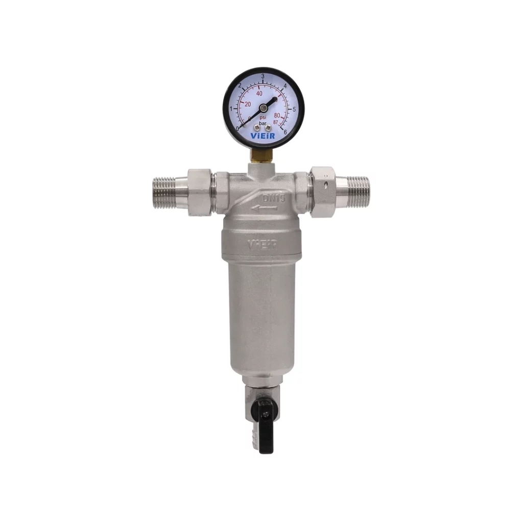В фильтр встроен дренажный шаровой кран со штуцером для подключения шланга и манометр для контроля уровня загрязненности сеток.Промывные фильтры для воды обеспечивают защиту от механических примесей оборудования систем водоснабжения и отопления с максимальной рабочей температурой до 110 °C. Их применяют также на трубопроводах масел, жидких углеводородов, сжатого воздуха.