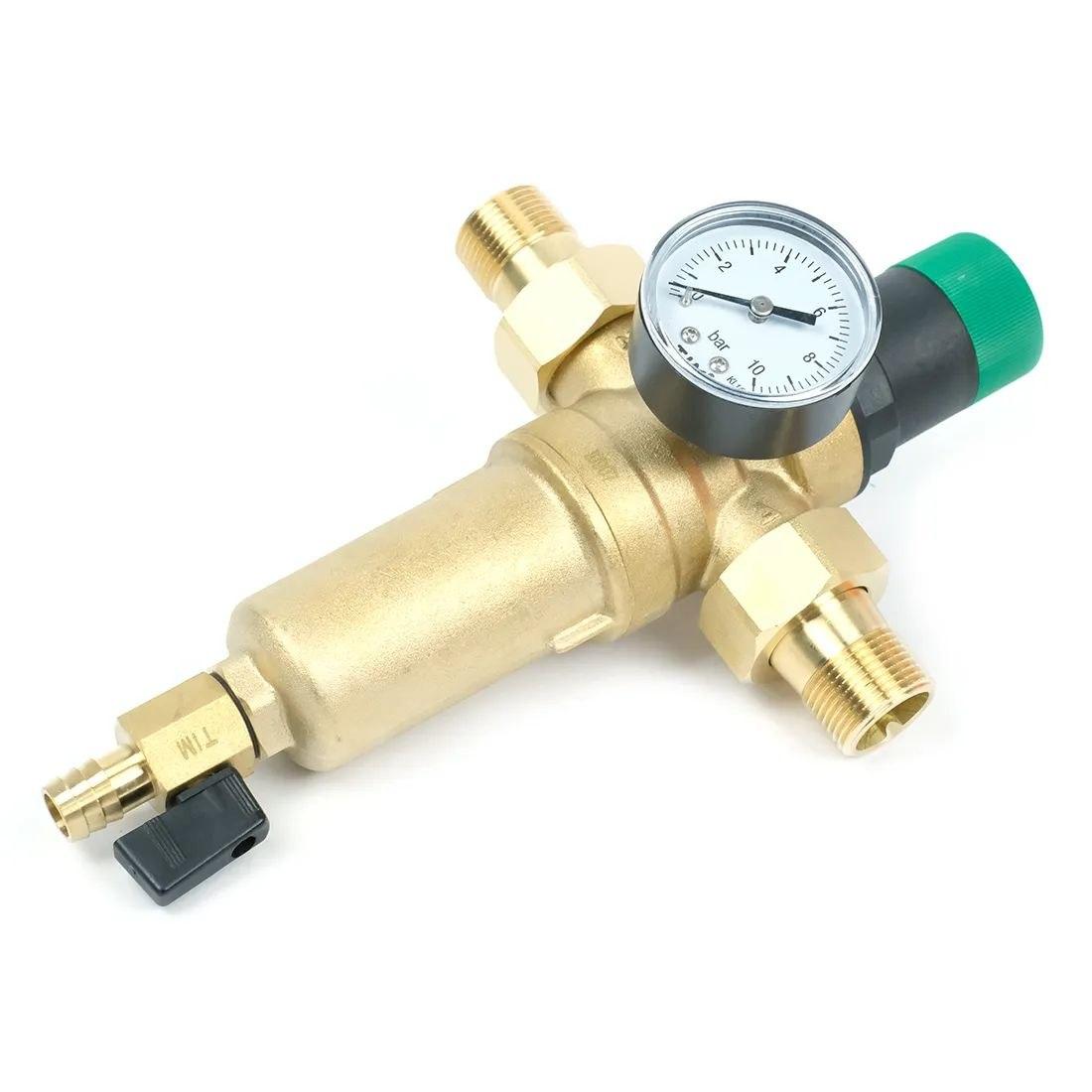 Промывной фильтр TIM JH-2007 механической очистки используется для фильтрации воды в водоснабжении и для понижения давления у потребителей. Размер подключения 3/4" НР на американках. Сетка имеет ячейки 100 мкм, колба латунная. Регулирование давления на выходе в пределах 1.5 - 6.0 бар.