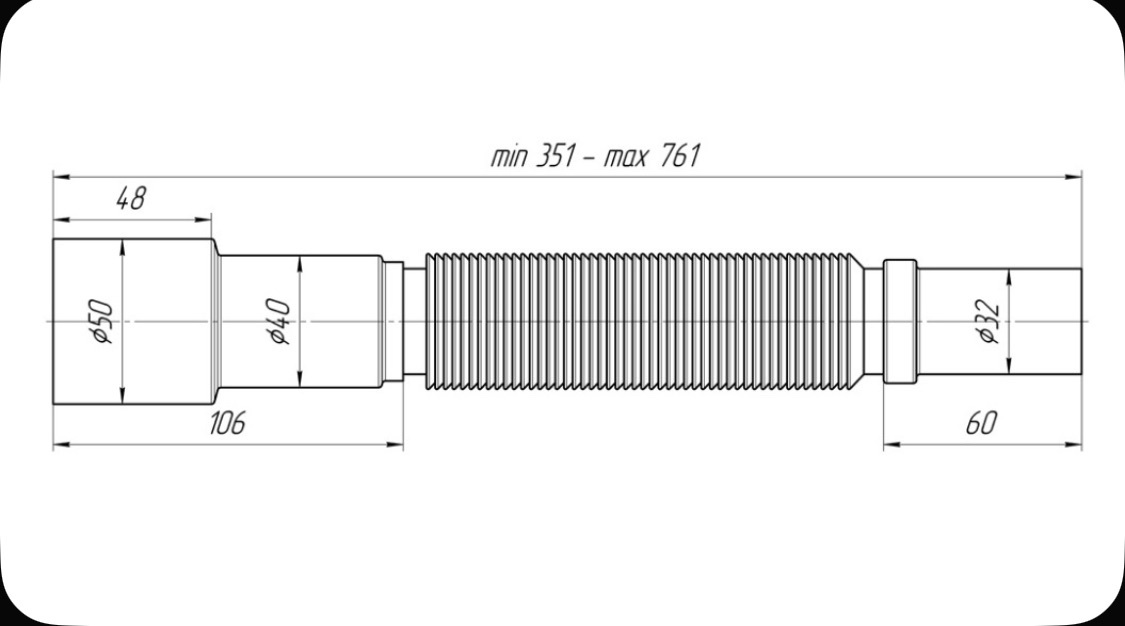 Труба гофрированная имеет регулировку по высоте, что позволяет настроить ее под индивидуальные требования. Минимальная высота составляет 351 мм, а максимальная – 761 мм. Это обеспечивает удобство использования и позволяет установить гофру в любом месте.