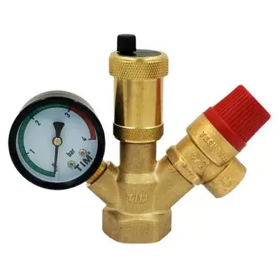 Комплектная группа безопасности мини применяется в закрытых системах водяного отопления мощностью до 50 кВт и представляют собой комбинацию предохранительного клапана, автоматического воздухоотводчика с запорным клапаном и манометра, смонтированных на консоли.