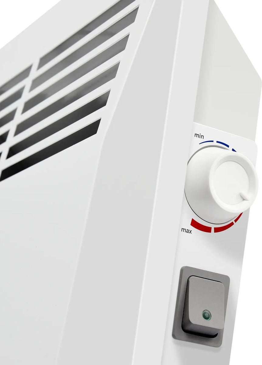 Регулировать мощность прибора можно переключателем, расположенным на боковой панели. Там же находится кнопка включения/выключения. Прочные ножки предохраняют от падения. При внезапном опрокидывании или перегреве обогреватель автоматически выключается.