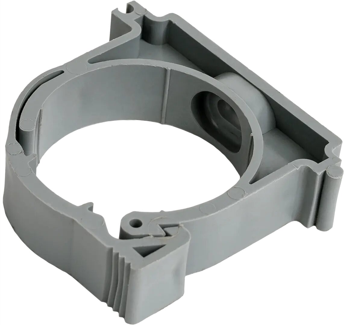 Хомуты используются для фиксации элементов трубопроводной системы, выпускаются диаметром 40 мм, 50 мм и 110 мм. Расстояние между хомутами должно составлять: для горизонтальных линий - 10 диаметров прокладываемой трубы, для вертикальных линий (для стояков) - 1000-2000мм.