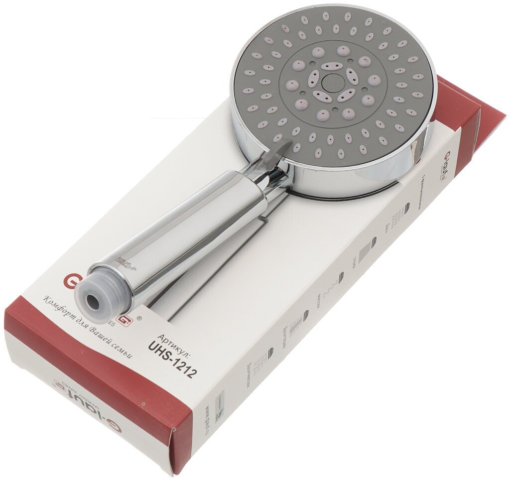 5-функциональная лейка в индивидуальной упаковке, режимы - распыление, массаж, брызги шампанского, распыление и массаж, распыление и брызги шампанского.