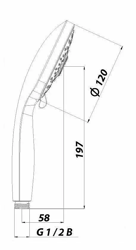 Лейка душевая 5-функциональная Ø120 мм. Режимы: распыление, массаж, брызги шампанского, распыление и массаж, распыление и брызги шампанского.