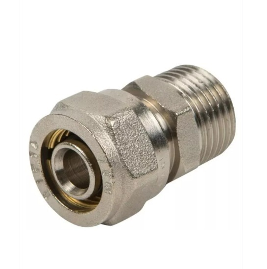 Фитинг имеет никелированное покрытие, которое предохраняет его от коррозии и повышает эстетическую привлекательность. Соединение обжимного типа обеспечивает надежную герметичность соединения.