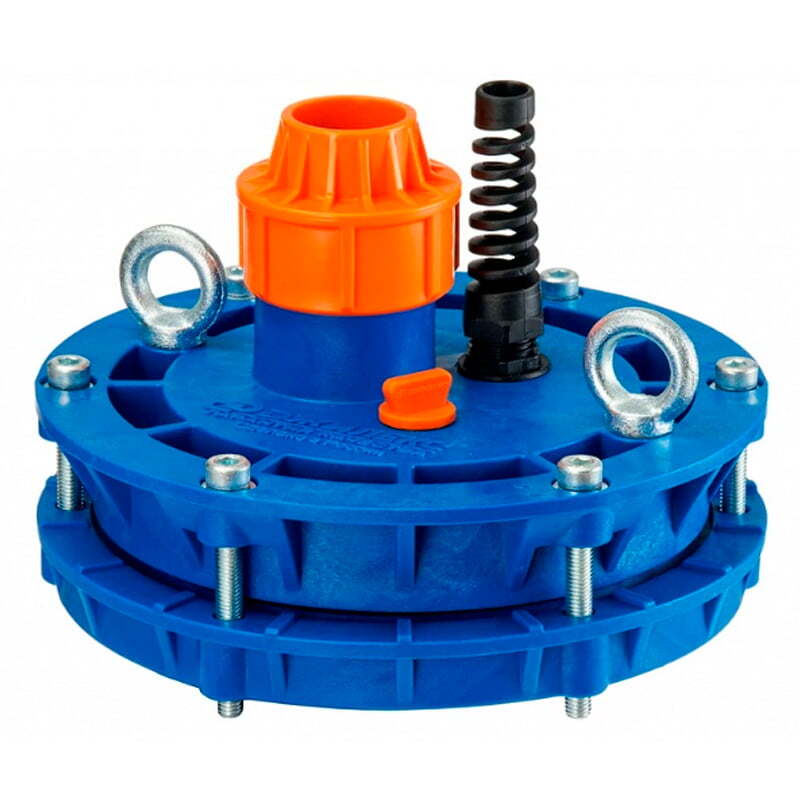 Оголовок скважинный предназначен для герметизации устья скважины с наружным диаметром обсадной трубы. Оголовок защищает скважину от попадания в неё поверхностных, грунтовых вод и посторонних предметов, позволяет увеличить дебит неглубоких скважин за счет образующегося разрежения между оголовком и понижающимся в процессе работы насоса уровнем воды, а также повышает надежность подвешивания насоса и упрощает эксплуатацию технического колодца.
