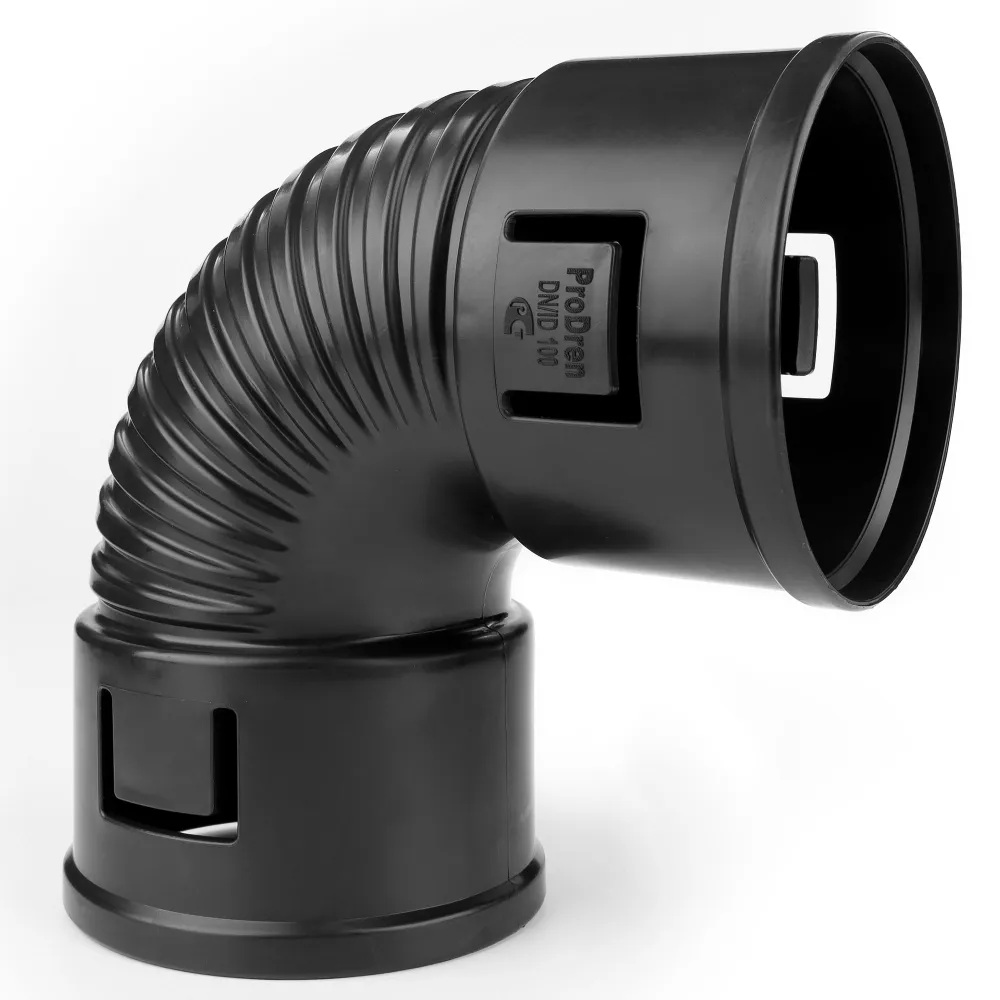 Отвод для дренажной трубы DN/OD используется для организации поворота системы из гофрированных труб, когда она прокладывается в условиях ограниченного пространства или приходится на конец бухты. В составе материала находится технический углерод (светостабилизатор), поэтому изделие не подвержено негативному воздействию солнечных лучей.