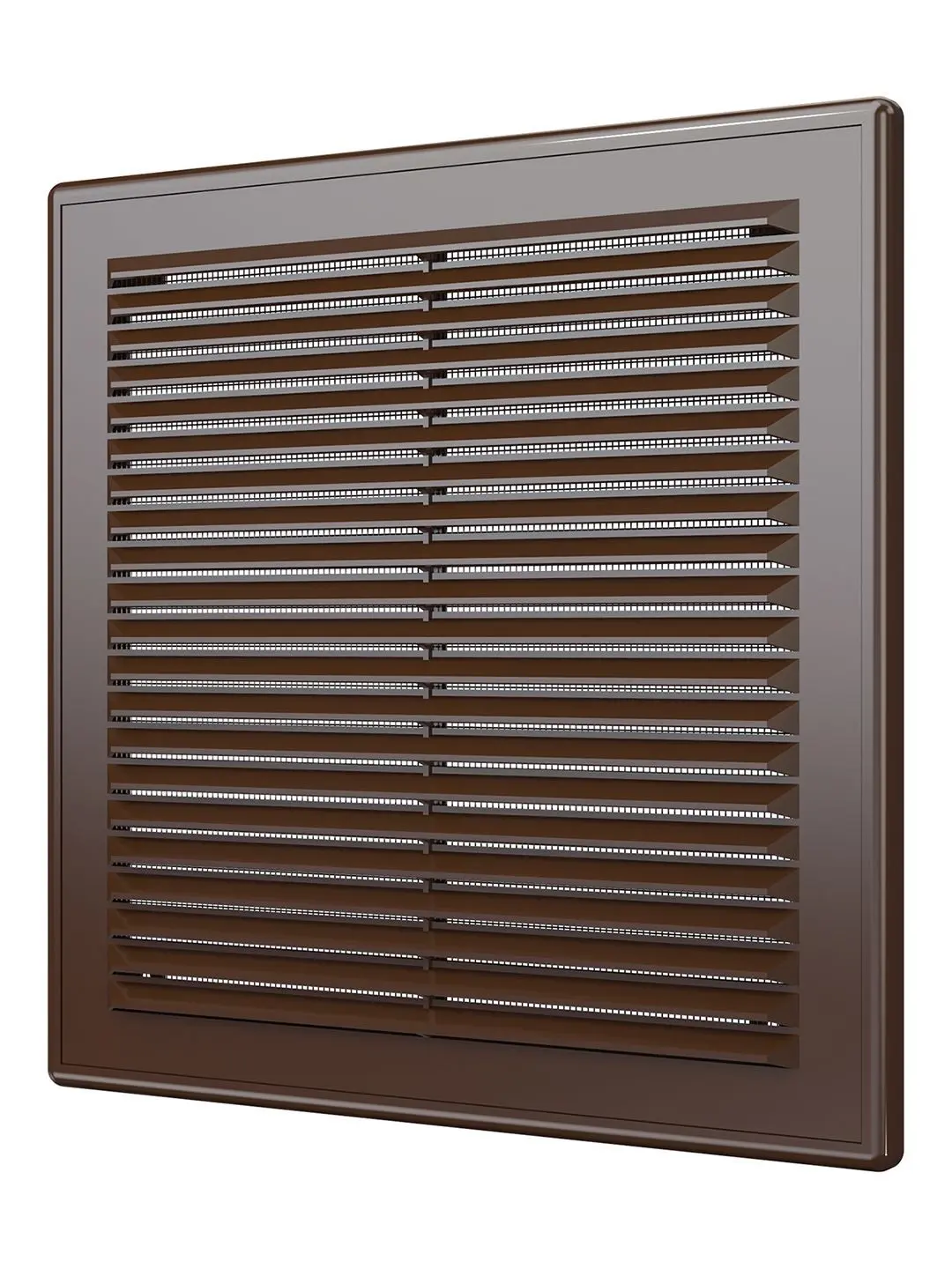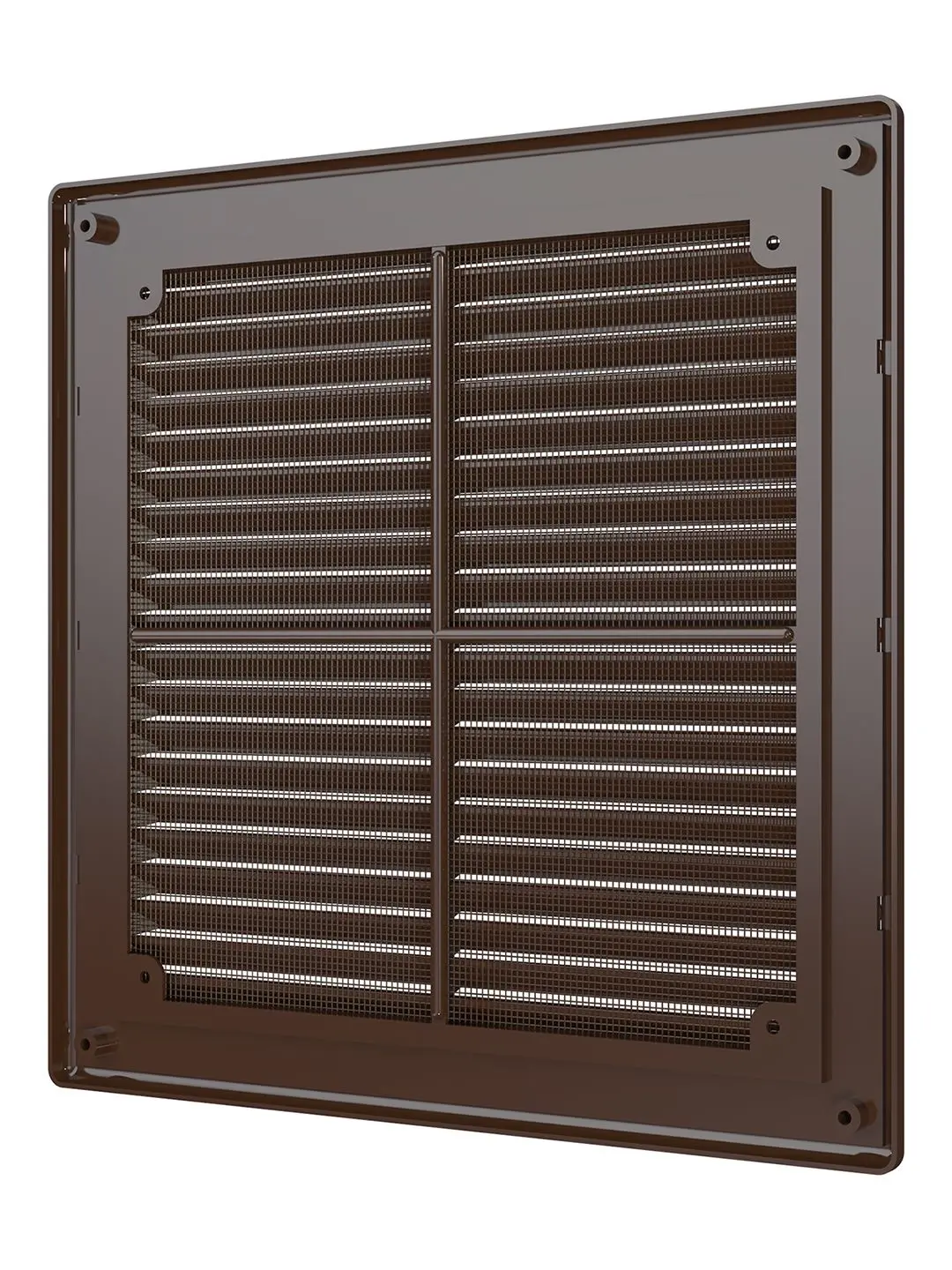 Вентиляционная решетка имеет наклонные жалюзи и оснащена защитной сеткой от насекомых.