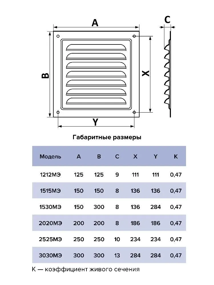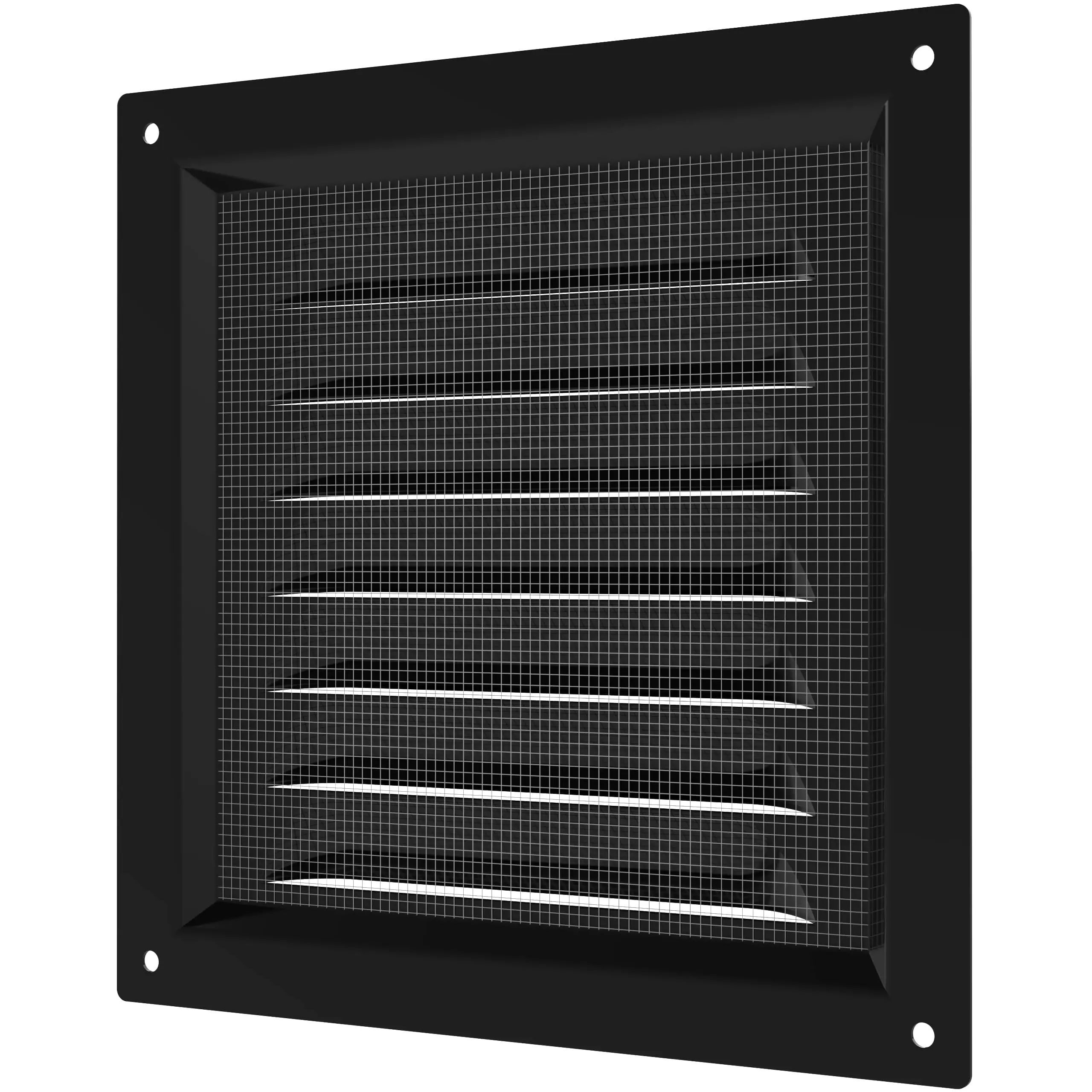 Вентиляционная решетка имеет наклонные жалюзи и оснащена защитной сеткой от насекомых.
