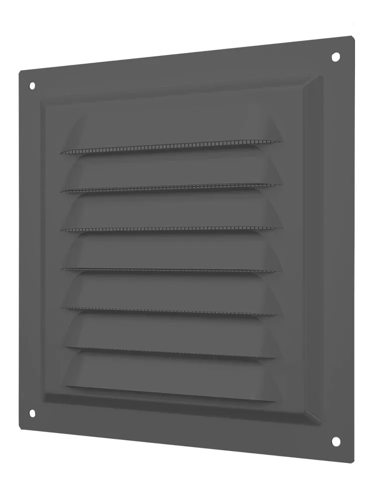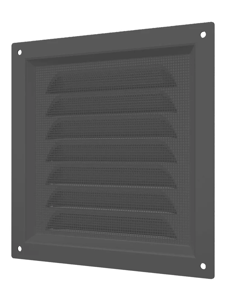 Вентиляционная решетка имеет наклонные жалюзи и оснащена защитной сеткой от насекомых.