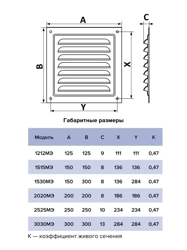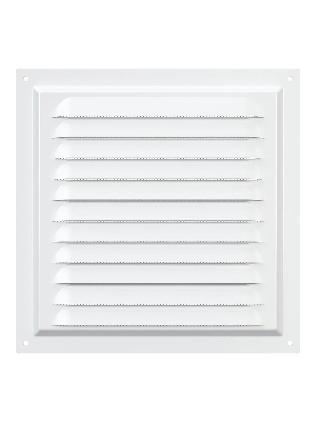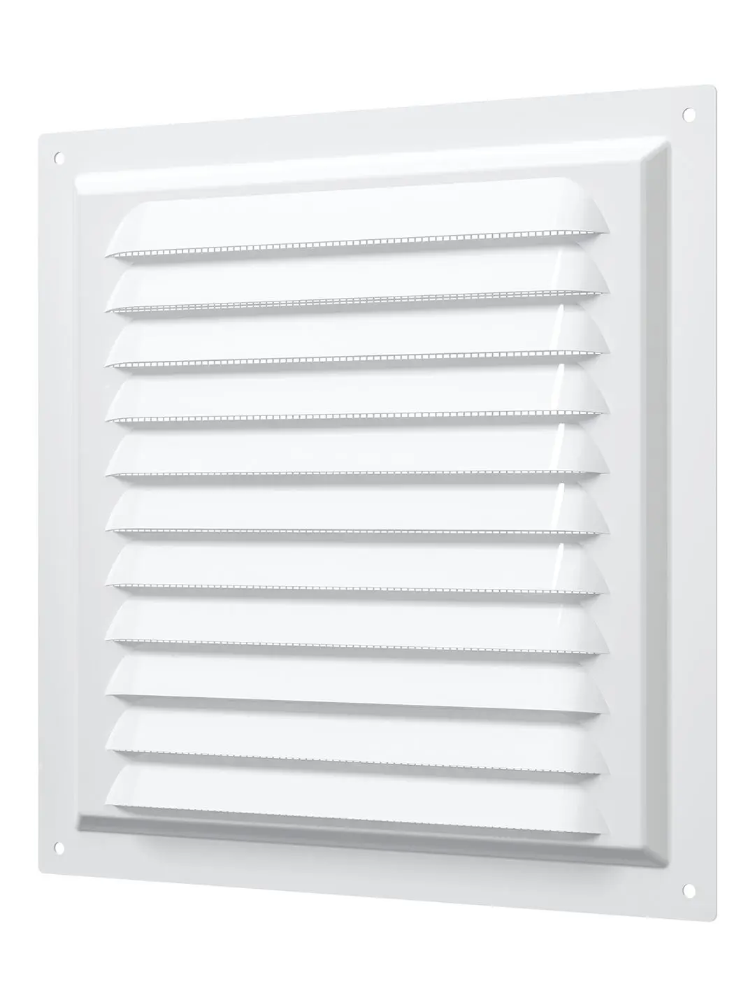 Вентиляционная решетка имеет наклонные жалюзи и оснащена защитной сеткой от насекомых.