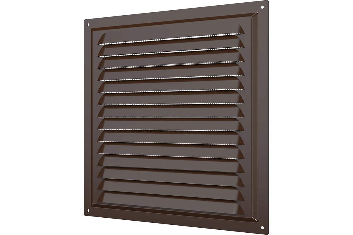 Вентиляционная решетка имеет наклонные жалюзи и оснащена защитной сеткой от насекомых.