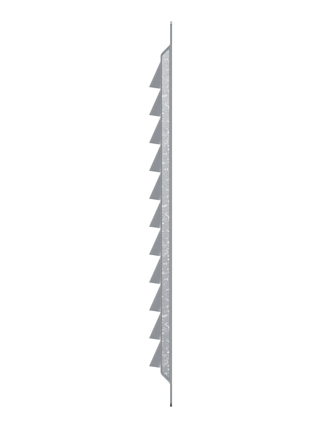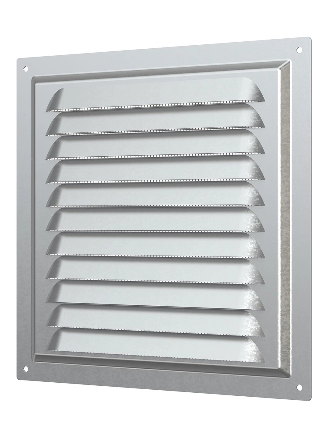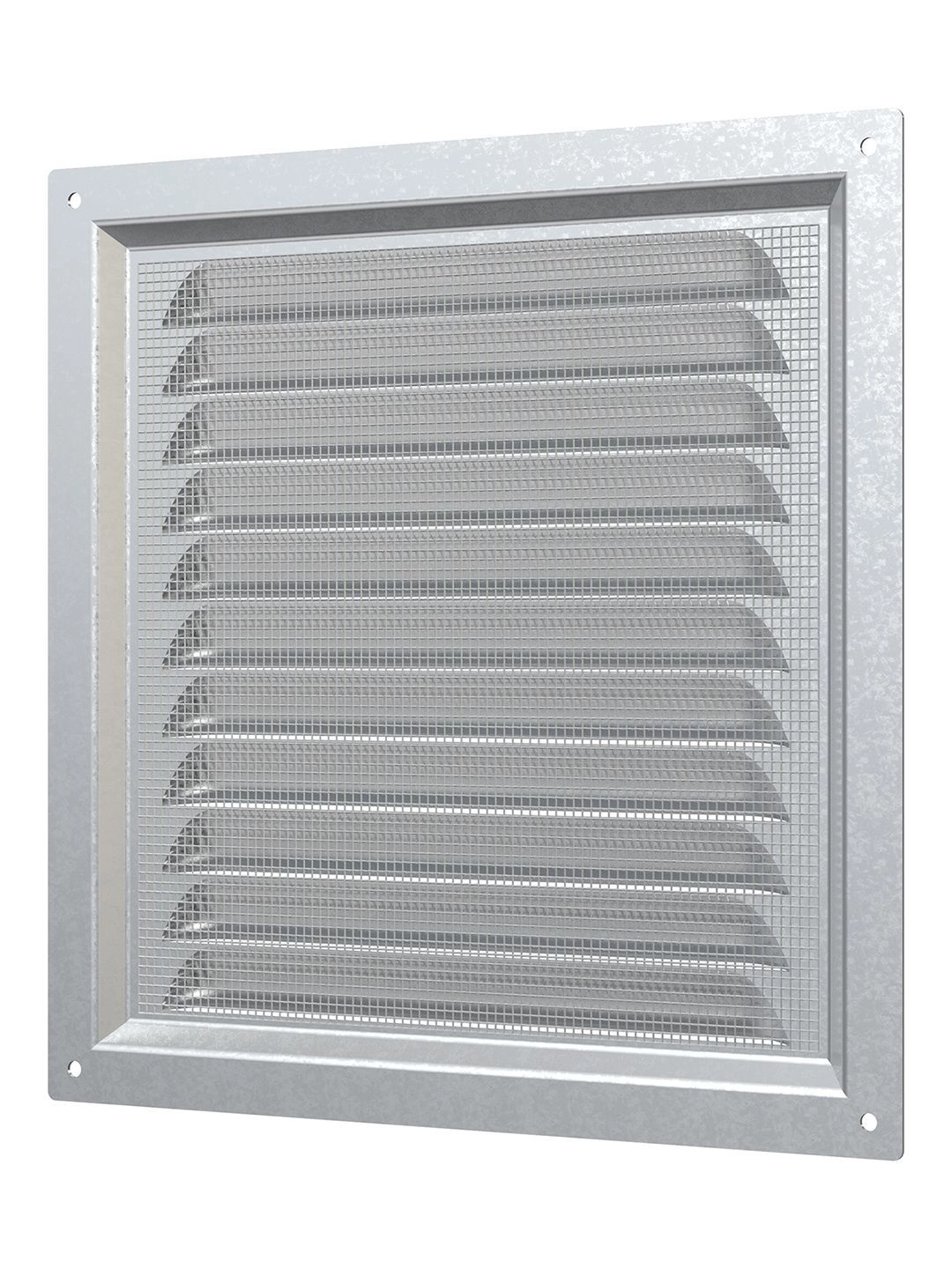 Вентиляционная решетка имеет наклонные жалюзи и оснащена защитной сеткой от насекомых.