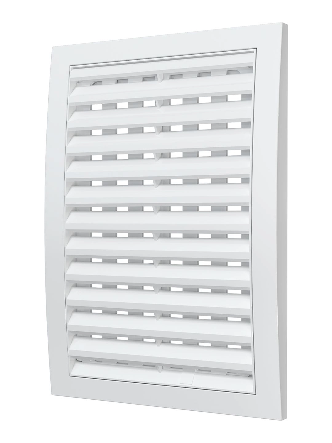 Вентиляционная решетка имеет наклонные жалюзи и оснащена защитной сеткой от насекомых.