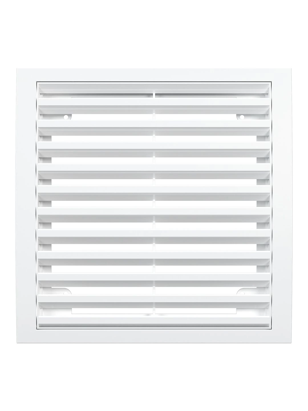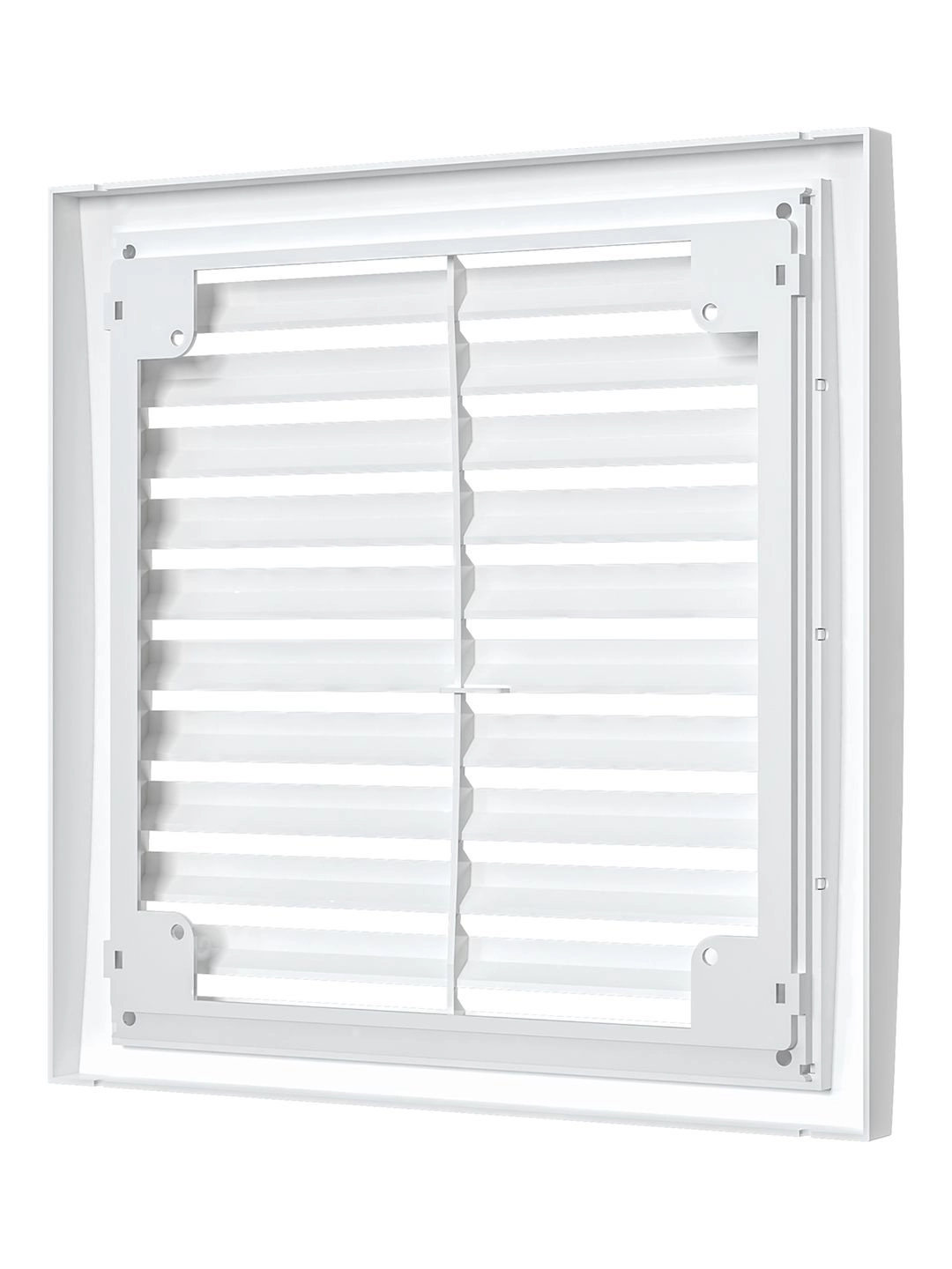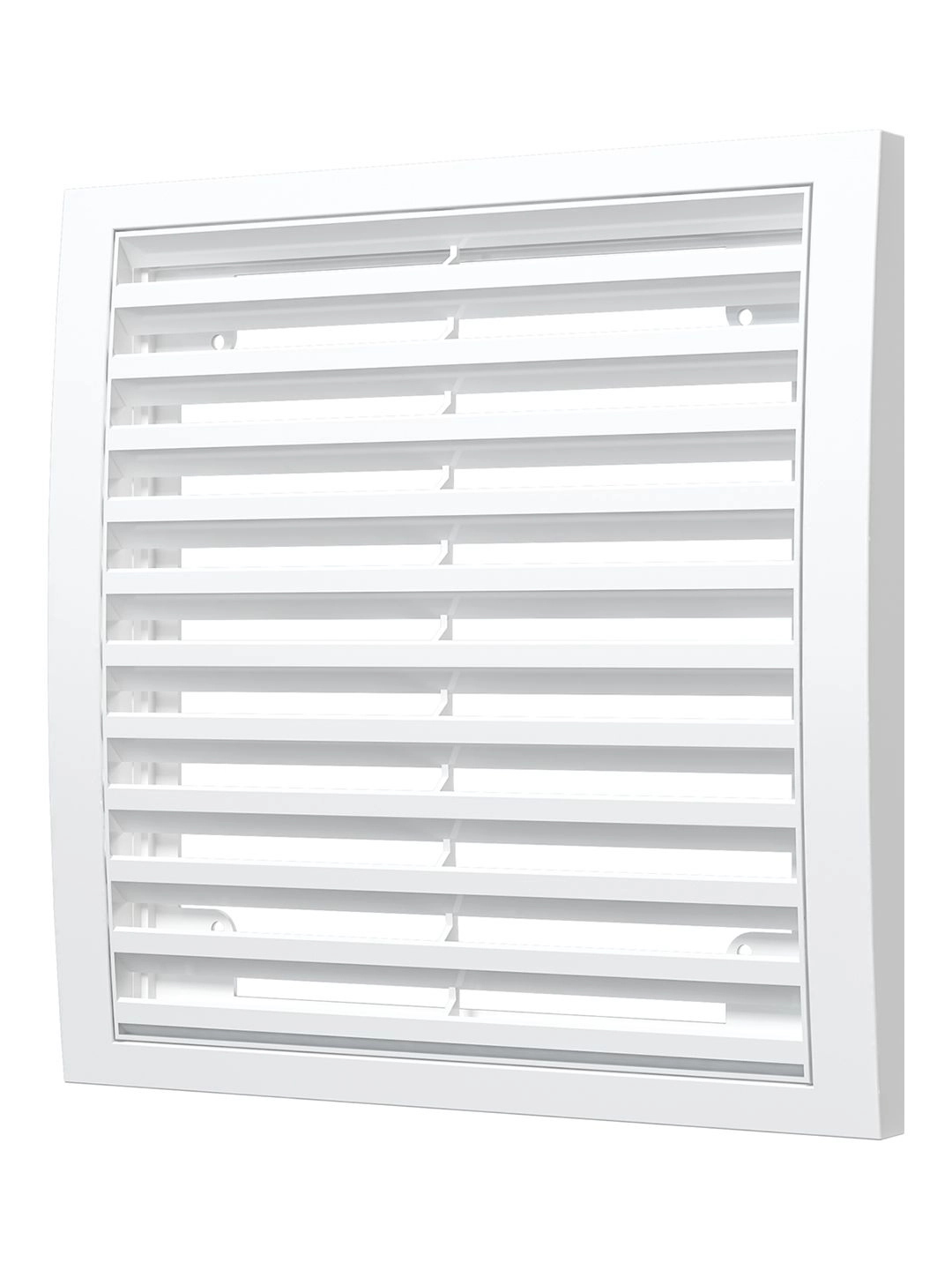 Вентиляционная решетка имеет наклонные жалюзи и оснащена защитной сеткой от насекомых.