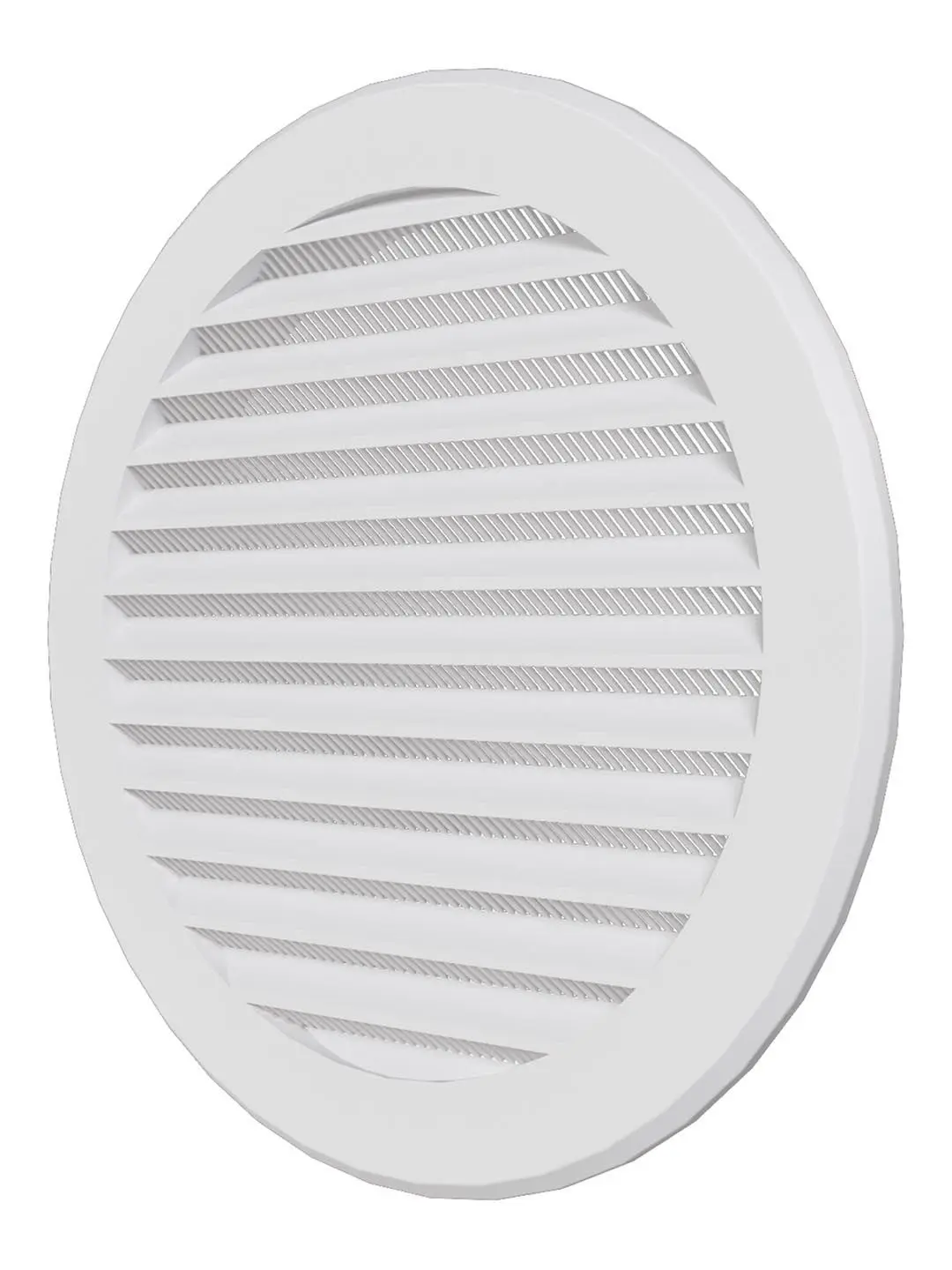 Вентиляционная решетка имеет наклонные жалюзи и оснащена защитной сеткой от насекомых.