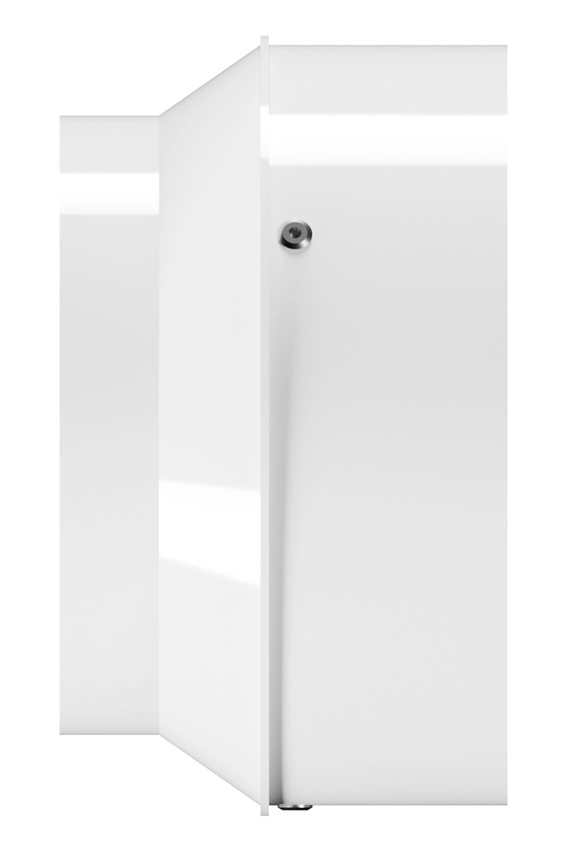 Решетка выполнена из оцинкованной стали толщиной 1,5 мм, что гарантирует прочность конструкции и долгий срок службы. Декоративная часть решетки окрашена белой порошковой краской с текстурой муарового шелка. Благодаря чему декоративная часть решетки гармонично сочетается с белым матовым полотном натяжного потолка, создавая единый стильный образ.