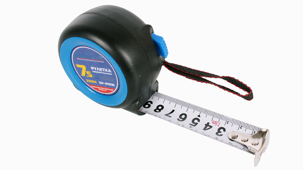 Рулетка с автостопом и магнитом имеет обрезиненный корпус, который удобно держать в руках.