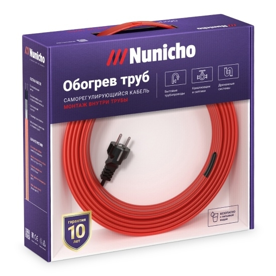 Саморегулирующийся кабель Nunicho в трубу 3м (кабель+сальник)