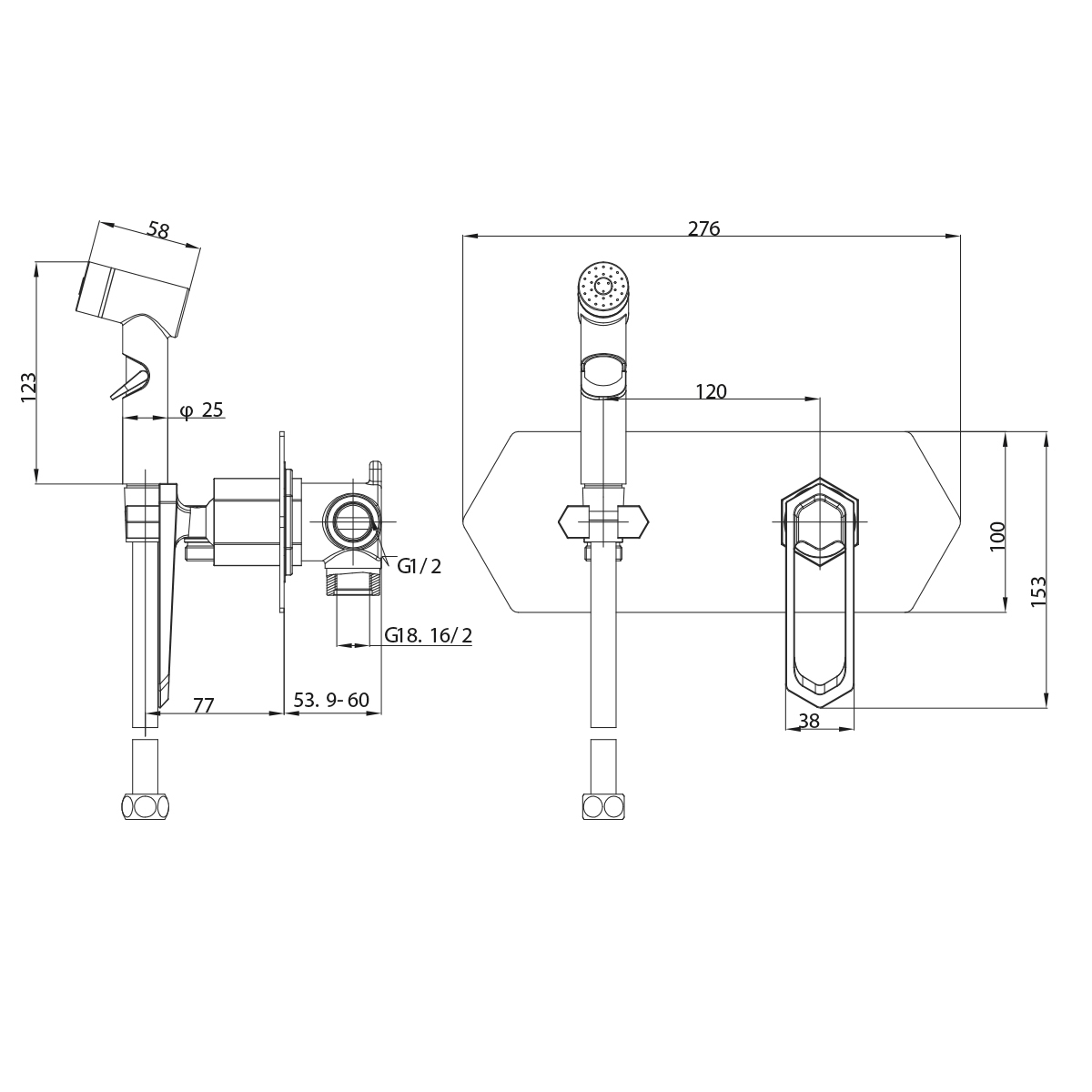 Смеситель с гигиеническим душем Lemark Prizma LM3919C встраиваемый, хром