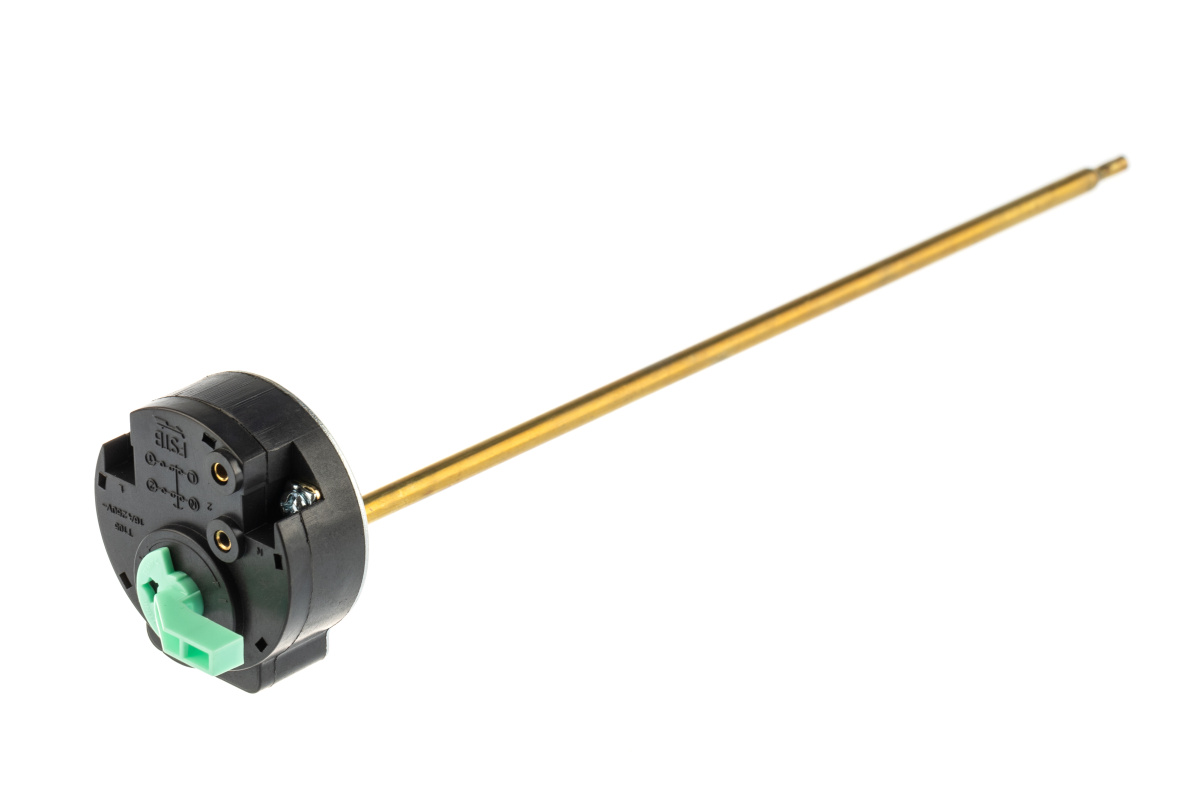 Стержневой термостат наиболее распространенный вид терморегулятора. Поддерживает температуру в нужном интервале в автоматическом режиме. По достижении максимальной температуры в термостате срабатывает реле, которое отключает нагрев ТЭНа и автоматически включает его при понижении температуры по достижению нижней границы температурного диапазона. Термостат серии RST предназначен для контроля температуры воды в водонагревателе. Использовать термостат возможно в сетях переменного тока до 240В с силой тока 16А.