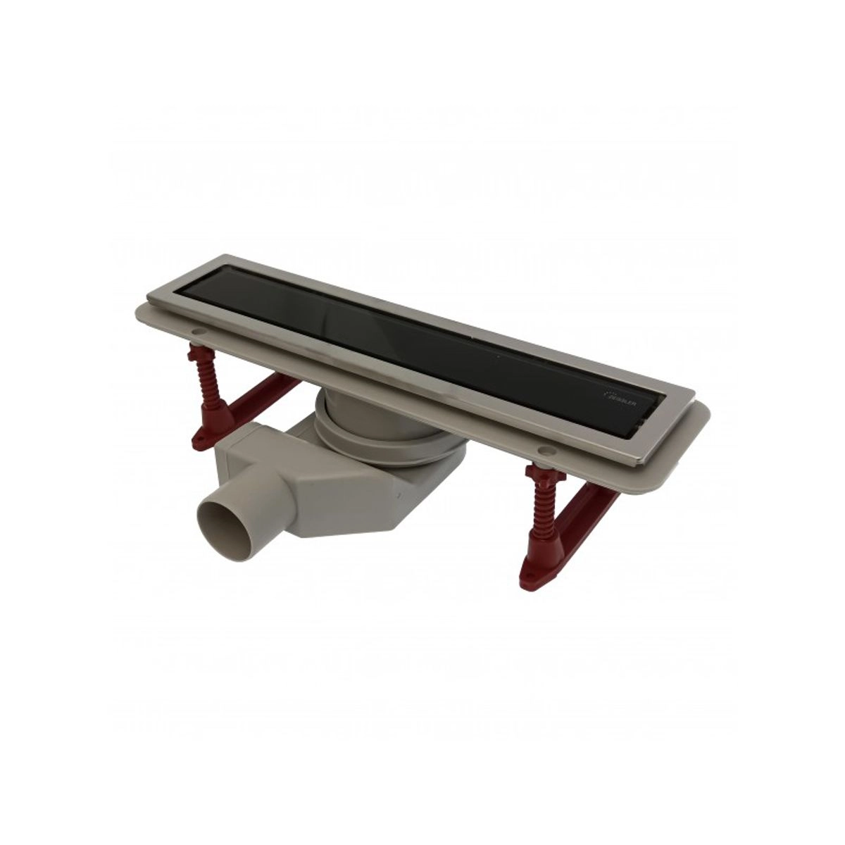 Трап для душ (желоб) с двухсторонней решеткой горизонтальный сток Evolux Glass (черное глянцевое стекло), с поворотным фланцем (сифоном) 360С свободного вращения 600x70 мм ZEISSLER ZSt.1131.6002.