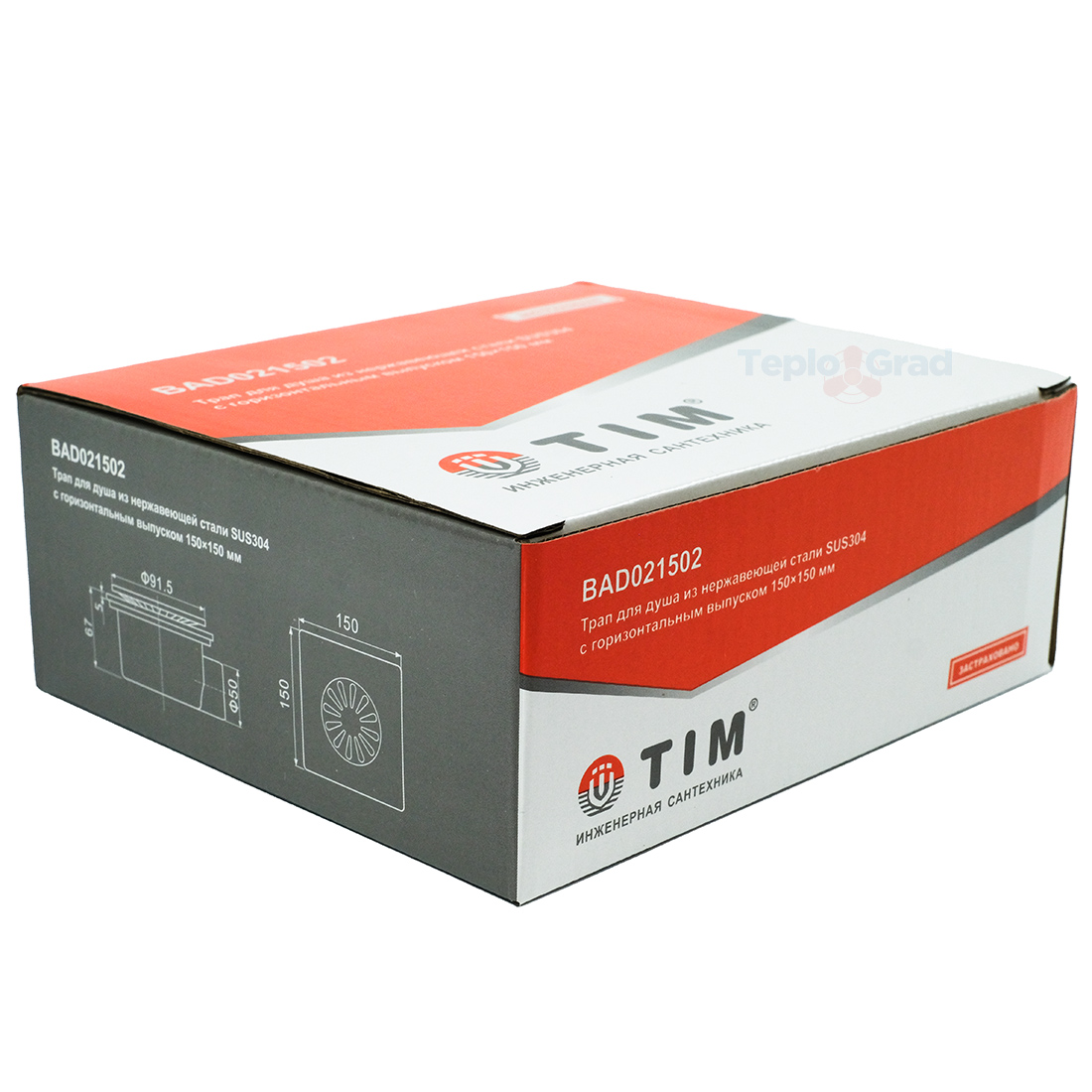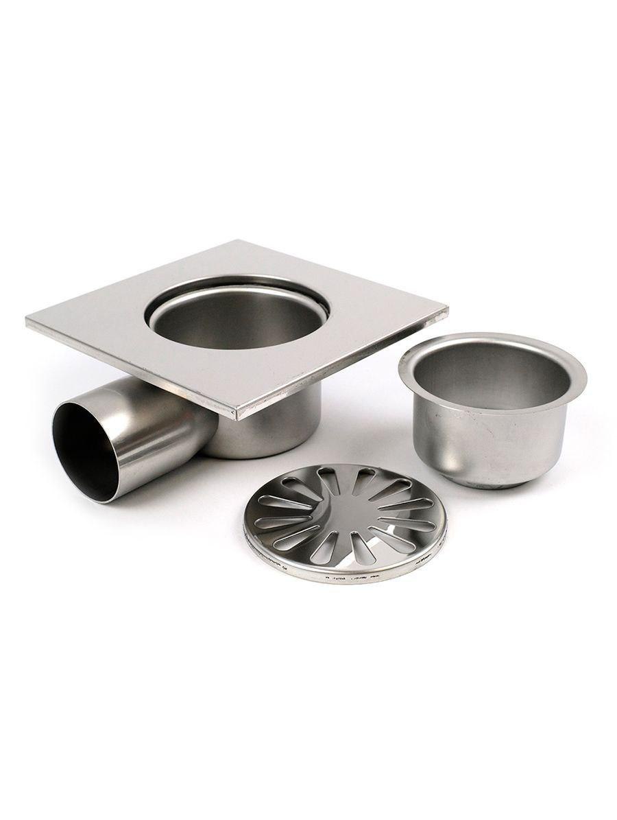 Трап для душа из нержавеющей стали SUS 304 с горизонтальным выпуском 150 × 150 мм, TIM, BAD021502