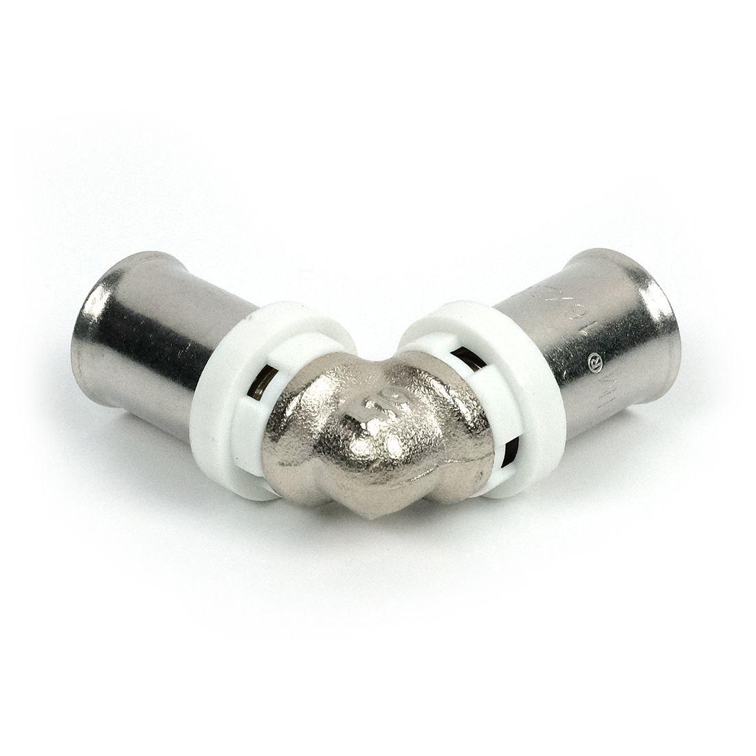 Пресс-угольник предназначен для создания неразъемного соединения металлополимерных труб одного диаметра с поворотом трубопровода на 90гр. Материал фитинга - латунь. Срок службы соединения составляет более 50 лет.