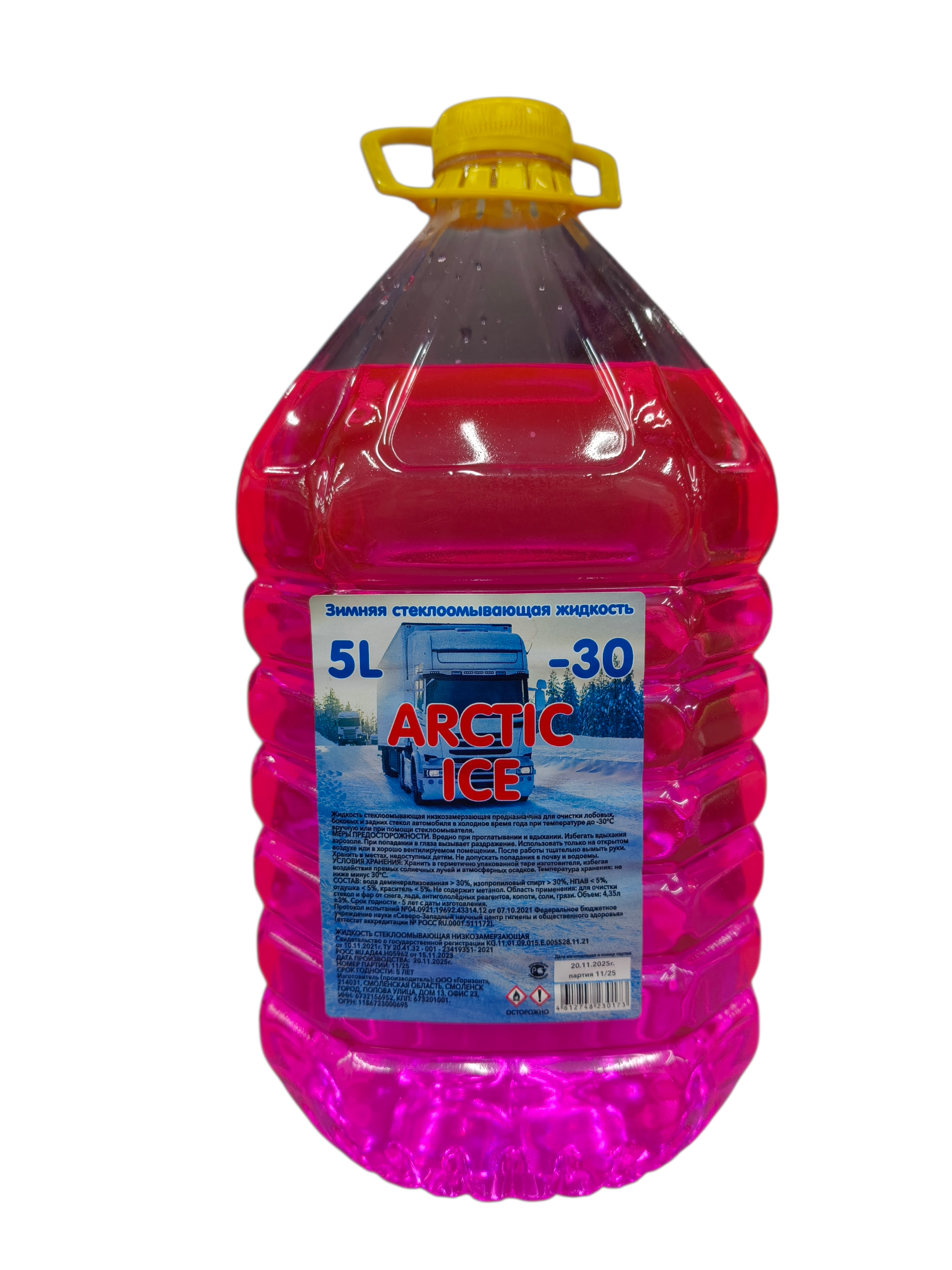 Безопасная низкозамерзающая стеклоомывающая жидкость для автомобилей на основе изопропилового спирта.